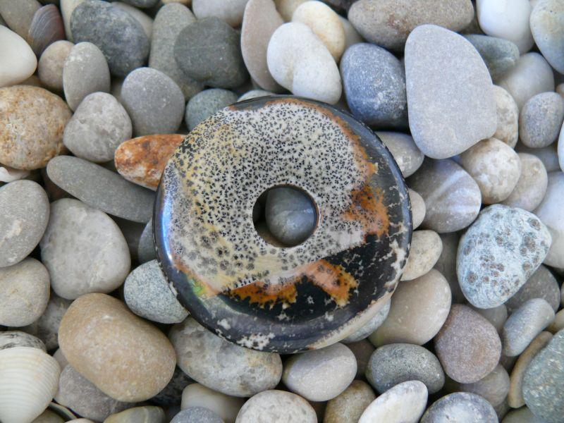 Popis:- velký kulatý donut s krásnou kresbou kamene - slouží k soustředění energie, posílení čaker a vnitřního klidu - prům. 4 cm. TIP: Přidáním závěsu na donut nebo energetické spirály získáte šperk, který můžete nosit na řetízku, lanku, obruči, bužírce atd... (velký výběr všeho tohoto najdete v sekci Kůže, doplňky, závěsy a spirály v sekci Donuty)