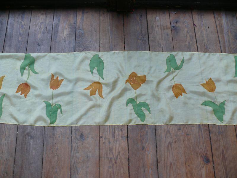 Popis:- hedvábná šála z materiálu pongé 5 - ručně malovaná - rozměr 150 x 40 cm ... II.jakost - zvýhodněná cena ....