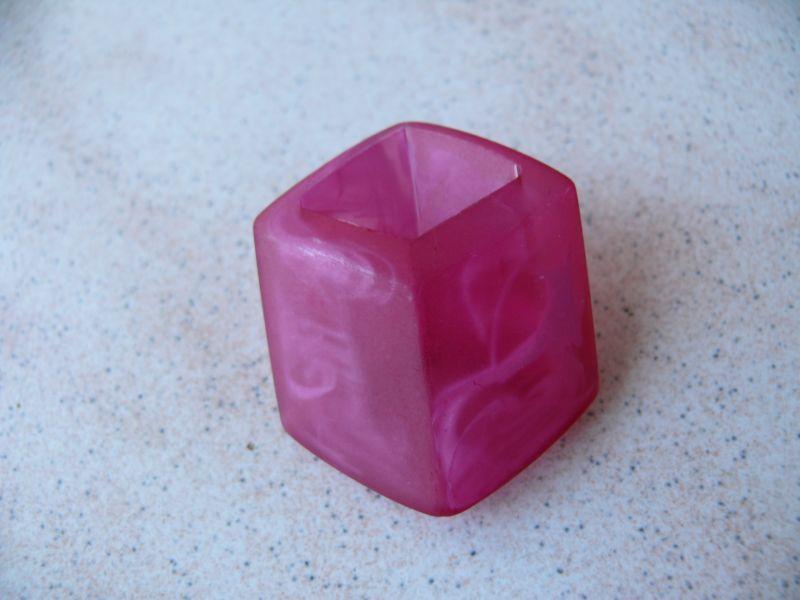 | Popis:- umělohmotný šátkový průvlak zajímavého tvaru - popsat tento tvar slovy je dost složité, tak si prosím v případě zájmu rozklikněte průvlak č.1684 perleťový světle zelený, tam jsou fota v detailu - vel. 3,5 x 4,5 - vel. otvoru 2,4 x 1,7 - barva základu sytě růžová mat. místy prolínaná světlejší růžovou ... skladem 2 ks ... |