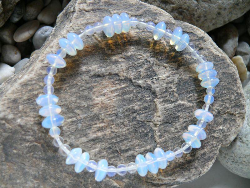 Popis:- pružný náramek z krásně duhujícího opalitu - složený z bochánků a kuliček - šířka náramku 0,85 cm ... skladem 1 ks ...