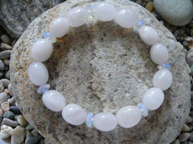 | Popis:- krásný pružný náramek z valounků růženínu a opalitových disků - vnitřní průměr náramku je 20 - 21 cm - šířka 1,1 cm ... |