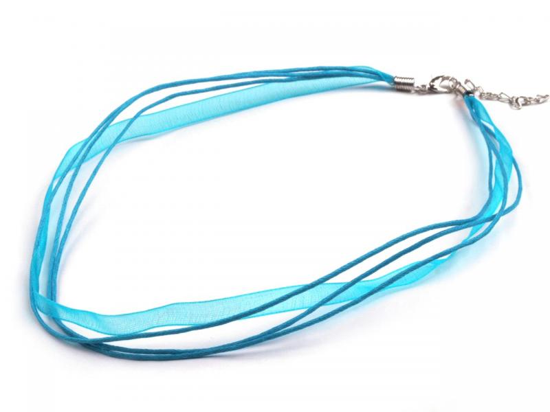 | Popis:- pro vytvoření originálního náhrdelníku - stačí zavěsit přívěsek nebo donut - tři bavlněné tenčí šňůrky (o průměru cca 1 mm) doplněné stuhou stejné barvy (šířka 6 mm) - zapínání na karabinku + prodlužovací řetízek - kov stříbrný bižuterní - délka 44 cm + 4 cm řetízek ... |