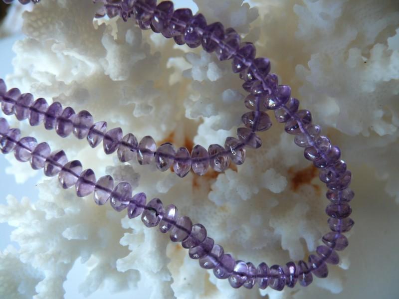 Popis:Krásný ametystový náhrdelník z kamínků ve tvaru čoček - délka 45 cm - šířka 0,6 cm