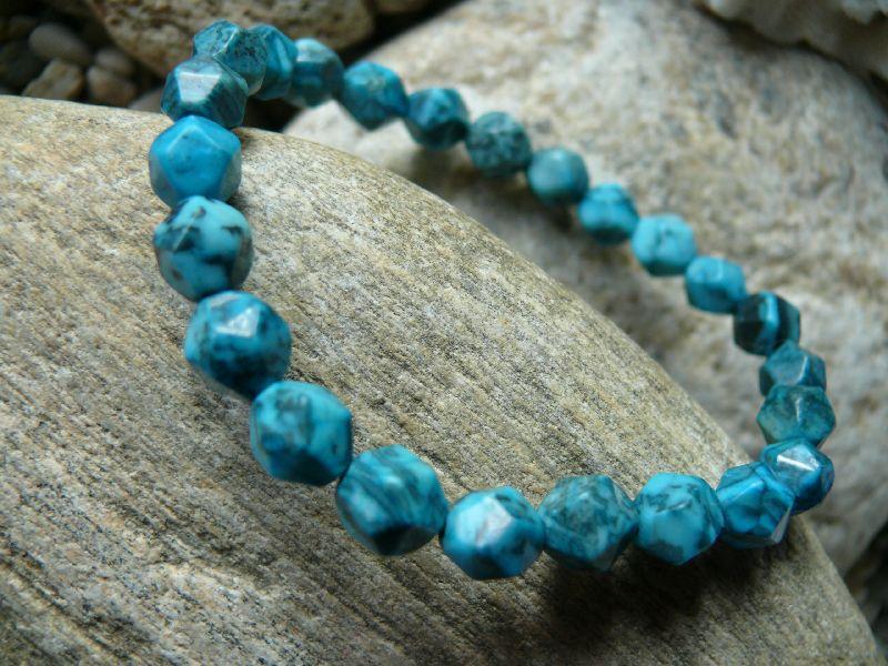 Popis:- krásný pružný náramek z vybrušovaných polodrahokamů (polyhedron = mnohostěn) o průměru cca 0,8 cm - vnitřní obvod 18,5 - 19 cm ...