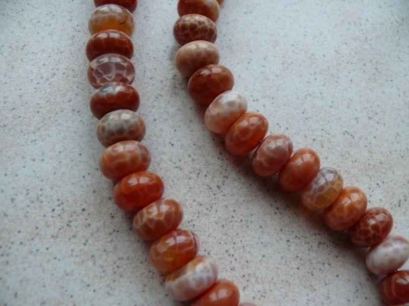 | Popis:-výběrový náhrdelník z krásných velkých ohnivých achátů (prům. 1,25 cm)- kamínky mají tvar vyšších bochánků - délka 44 cm - náhrdelník navlečen na potaženém pevném lanku, zapínání z pravého stříbra Ag 925. Na požádání mohu připojit k náhrdelníku prodlužovací řezízek s pevnými většími oky ze stříbrného obecného kovu (bez obsahu niklu) v délce podle Vašeho přání - zdarma... |