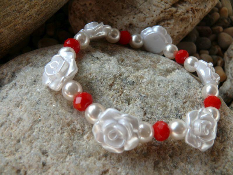 | Popis:- dětský náramek z perleťových růžiček, perliček a skleněných broušených korálků - vnitřní průměr 14 cm ... velikost můžeme na požádání upravit ... kleněné korálky vyrobeny v ČR - velikost korálků 0,6 cm - velikost růžičky 1,2 cm - růžičky jsou z perleťového akrylu ... |