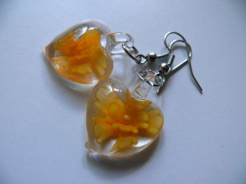 | Popis:- Vložte do košíku pokud se vám tento dárek líbí a pokud objednávka činí 450,-Kč a výše ......- Krásná a svěží skleněná srdíčka se zapouštěným oranžovým sklem uvnitř, ve tvaru křehké květiny - ruční práce ... Náušnice závěsné - velikost srdíčka 1,9 x 2,4 cm - náušnicová srdíčka se dají odepnout a můžeme je využít i jako jemné přívěsky např. pro děti ... |