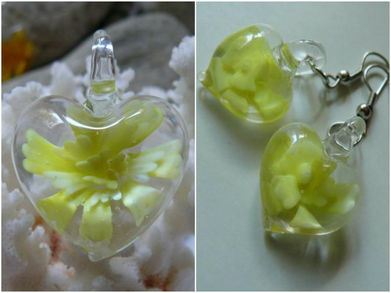 | Popis:- Vložte do košíku pokud se vám tento dárek líbí a pokud objednávka činí 700,-Kč a výše ......- Krásná a svěží souprava - dárkově balená - skleněná srdíčka se zapouštěným žlutým sklem uvnitř, ve tvaru křehké květiny - ruční práce ....... Přívěsek o velikosti 3,6 x 4,3 cm (i se závěsným okem - bez něj výška srdce cca 3,2 cm) - srdce zavěšené na oranžovém náhrdelníku z organzové stuhy a voskovaných bavlněných šňůrek - zapínání na karabinu - délka 46 cm + prodlužovací řetízek ....... Náušnice závěsné - velikost srdíčka 1,9 x 2,4 cm - náušnicová srdíčka se dají odepnout a můžeme je využít i jako jemné přívěsky např. pro děti ... |