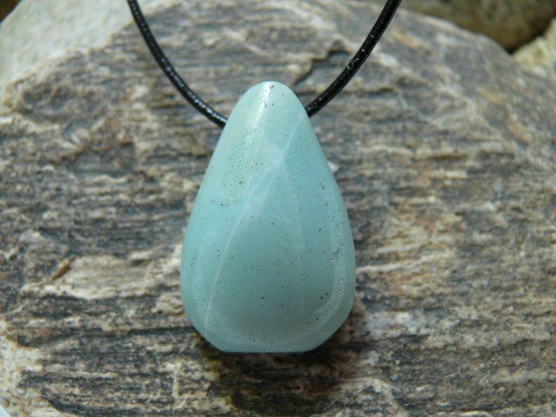 | Popis:- krásný, z boku v horní třetině vrtaný přívěsek - zadní strana rovná, přední zakulacená - velikost cca 2 x 3 cm - přívěsek je na černé kulaté kůži o průměru 1,5 mm se zapínáním na stříbrnou karabinku (kov bižuterní) - délka 45 cm (na požádání mohu kůži zkrátit) ... |