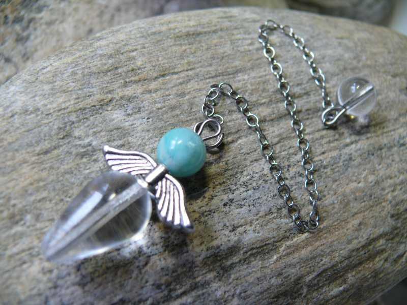 | Popis:- krásné andělské kyvadélko, které můžete mít stále u sebe - řetízek zakončen kuličkou z přírodního křišťálu ... složeno z Amazonitu (hlavička o průměru 0,8 cm) a skleněné kapky - řetízek a všechny použité kovové komponenty jsou z chirurgické oceli - kromě andělskýc křídel - ty jsou z bižuterního kovu - délka 3,1 cm, šířka 2,1 cm - délka řetízku cca 15,5 cm ... obdržíte v dárkovém zatahovacím sáčku ... |