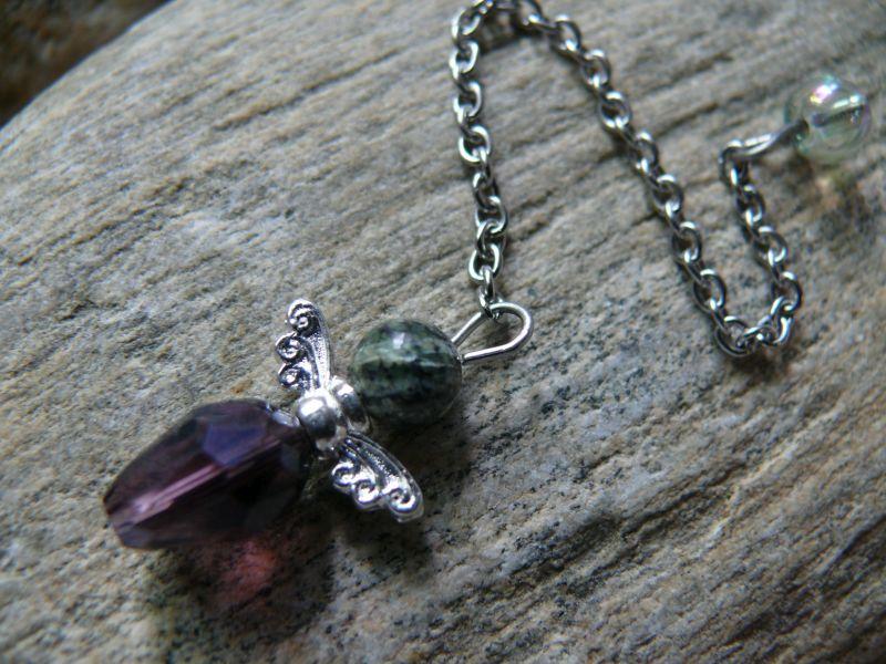 | Popis:- krásné andělské mini kyvadélko do kapsy či do kabelky, které můžete mít stále u sebe ... hlavička z polodrahokamu Chrysotilu - řetízek a ostatní komponenty jsou z chirurgické oceli - pouze křidélka kov stříbrný bižuterní - velikost andílka 2,1 cm, šířka křidélek cca 1,5 cm - délka řetízku cca 9 cm - řetízek z chirurgické oceli zakončen kuličkou z Aqua aura křišťálu ... obdržíte v dárkovém zatahovacím sáčku. |