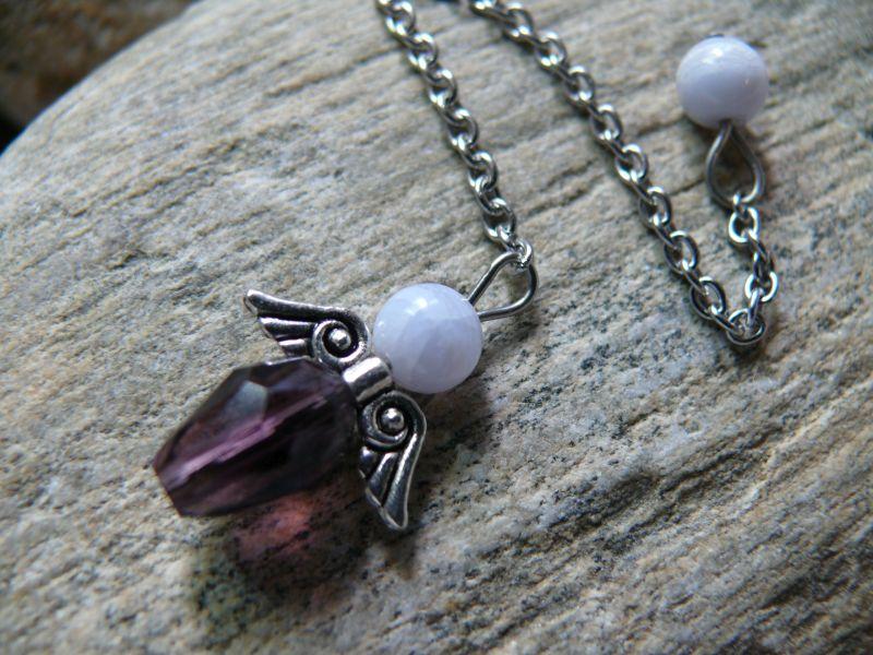 | Popis:- krásné andělské mini kyvadélko do kapsy či do kabelky, které můžete mít stále u sebe ... hlavička z polodrahokamu Chalcedonu - řetízek a ostatní komponenty jsou z chirurgické oceli - pouze křidélka kov stříbrný bižuterní - velikost andílka 2,1 cm, šířka křidélek cca 1,5 cm - délka řetízku cca 9 cm - řetízek z chirurgické oceli zakončen také kuličkou z Chalcedonu ... obdržíte v dárkovém zatahovacím sáčku. |