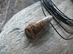 | Popis:- krásný, z boku v horní třetině vrtaný přívěsek - zadní strana rovná, přední zakulacená - velikost cca 3 cm - přívěsek je na černé kulaté kůži o průměru 1,5 mm se zapínáním na stříbrnou karabinku (kov bižuterní) - délka 45 cm (na požádání mohu délku upravit nebo přívěsek dodat ne na kůži, ale na stříbrném potaženém lanku, které je pevné a vhodné i pro alergiky) ... |