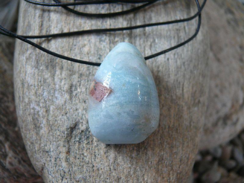 | Popis:- krásný, z boku v horní třetině vrtaný přívěsek - zadní strana rovná, přední zakulacená - velikost cca 3 cm - přívěsek je na černé kulaté kůži o průměru 1,5 mm se zapínáním na stříbrnou karabinku (kov bižuterní) - délka 45 cm (na požádání mohu délku upravit nebo přívěsek dodat ne na kůži, ale na stříbrném potaženém lanku, které je pevné a vhodné i pro alergiky) ... |
