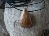 Popis:- krásný, z boku v horní třetině vrtaný přívěsek - zadní strana rovná, přední zakulacená - velikost cca 3 cm - přívěsek je na černé kulaté kůži o průměru 1,5 mm se zapínáním na stříbrnou karabinku (kov bižuterní) - délka 45 cm (na požádání mohu délku upravit nebo přívěsek dodat ne na kůži, ale na stříbrném potaženém lanku, které je pevné a vhodné i pro alergiky) ...