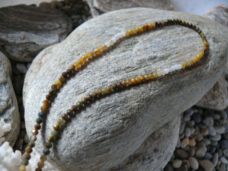 | Popis:- jemný náhrdelník z krásně do třpytu vybrušovaných polodrahokamů o průměru cca 3,15 mm - délka 44 cm + prodlužovací řetízek - zapínání na karabinu z chirurgické oceli - z chirurg. oceli jsou i ostatní kovové komponenty, které tvoří zapínání ...Pietersit přináší pozitivní energii a dodává mimořádnou osobní sílu, odvahu a sebevědomí.