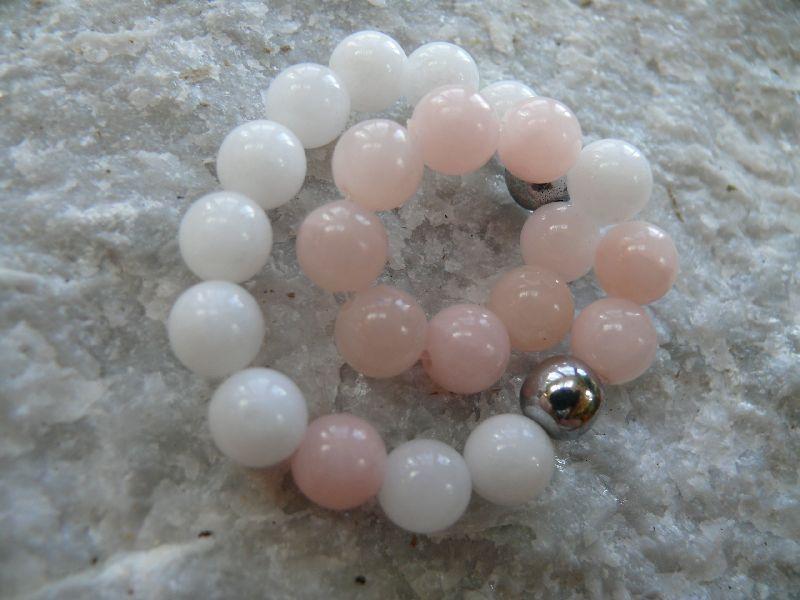 | Popis:- autorský, pružný, nádherně barevně sladěný náramek - jemný růženín doplněný sněžným bílým křemenem - náramek zdobí kuličky postříbřeného hematitu - velikost kuliček 0,86 cm - vnitřní obvod náramku cca 18,5 cm (velikost náramku mohu na požádání upravit) ... |