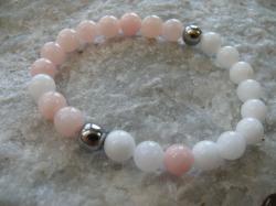 | Popis:- autorský, pružný, nádherně barevně sladěný náramek - jemný růženín doplněný sněžným bílým křemenem - náramek zdobí kuličky postříbřeného hematitu - velikost kuliček 0,86 cm - vnitřní obvod náramku cca 18,5 cm (velikost náramku mohu na požádání upravit) ... |