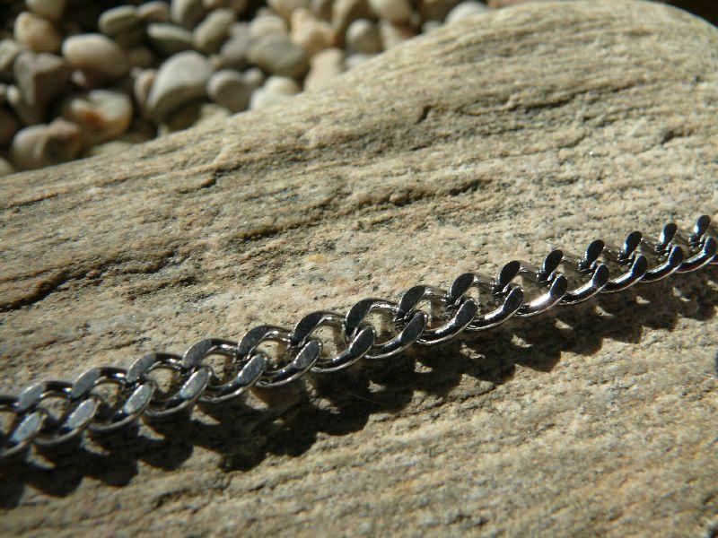 | Popis:- krásný náramek z plochých oček hezky přilne na zápěstí - z chirurgické oceli - šířka 4,6 mm - délka cm - délku náramku Vám mohu na požádání upravit (zkrátit i prodloužit) za tuto cenu až do délky 20 cm ... |