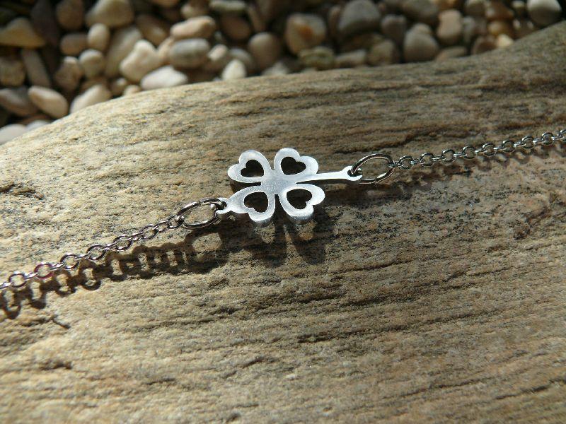 Popis:- krásný náramek - chirurgická ocel leštěná - řetízek oválky 2 mm - zapínání na karabinku - délka 18,5 cm - velikost čtyřlístku 2,1 x 1,2 cm ... délku náramku mohu na přání upravit (zkrátit i prodloužit) ...