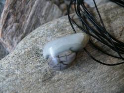 | Popis:- krásný, z boku v horní třetině vrtaný přívěsek - zadní strana rovná, přední zakulacená - velikost cca 3 cm - přívěsek je na černé kulaté kůži o průměru 1,5 mm se zapínáním na stříbrnou karabinku (kov bižuterní) - délka 45 cm (na požádání mohu délku upravit nebo přívěsek dodat ne na kůži, ale na stříbrném potaženém lanku, které je pevné a vhodné i pro alergiky) ... |