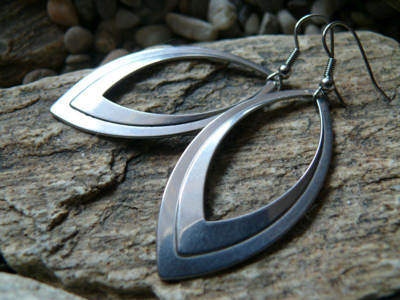 Popis:- krásné elegantní náušnice, z vysoce leštěné chirurgické oceli se závěsným očkem - velikost samotného přívěsku bez afroháčku 2,3 x 5 cm