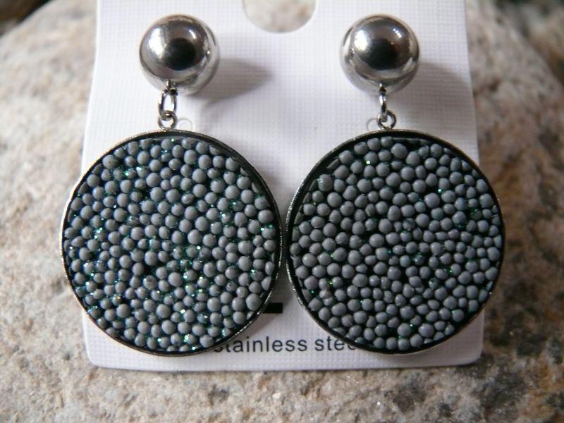 Popis:- zajímavé, moc hezky působící, puzetové náušnice z chirurgické oceli. Puzeta zakončena kuličkou o průměru 0,8 cm - kola v odstínu šedý antracit se lehce třpytí - mají průměr 2,1 cm ...