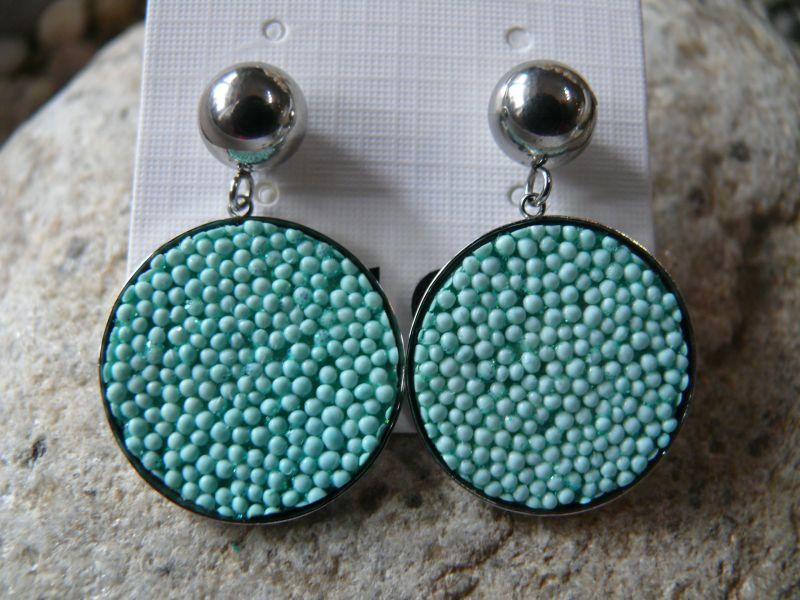 Popis:- zajímavé, moc hezky působící, puzetové náušnice z chirurgické oceli. Puzeta zakončena kuličkou o průměru 0,8 cm - tyrkysová kola se lehce třpytí - mají průměr 2,1 cm ...