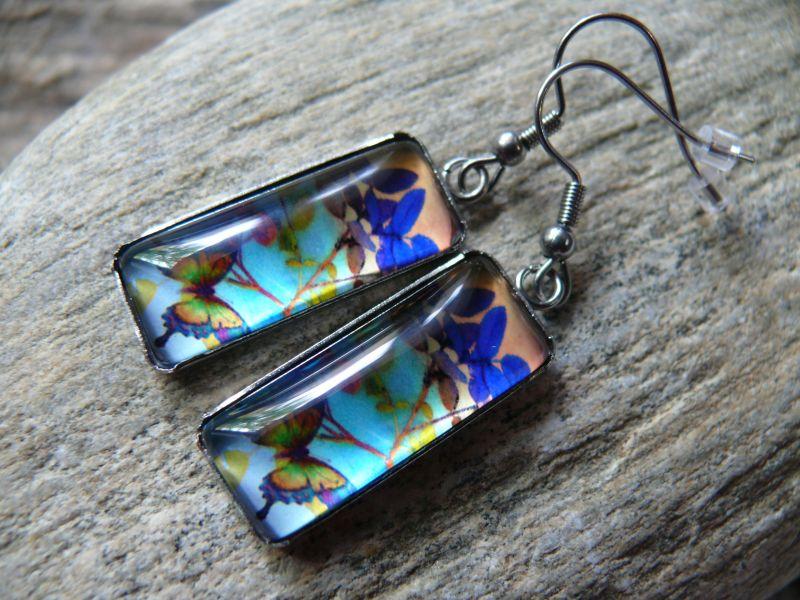 Popis:- moc hezké, originální, závěsné náušnice - do lůžka z chirurgické oceli je vsazen skleněný kabošon s krásnou kresbou - vše kovové je z chirurgické oceli - velikost obdélníku 1,1 x 2,6 cm ...