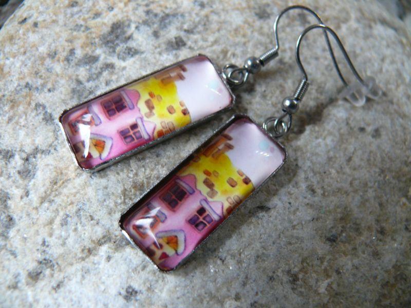 Popis:- moc hezké, originální, závěsné náušnice - do lůžka z chirurgické oceli je vsazen skleněný kabošon s krásnou kresbou - vše kovové je z chirurgické oceli - velikost obdélníku 1,1 x 2,6 cm ...