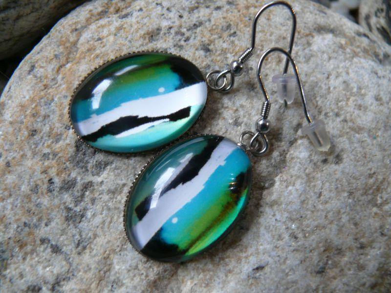 Popis:- moc hezké, originální, závěsné náušnice - do lůžka z chirurgické oceli je vsazen skleněný kabošon s krásnou kresbou - vše kovové je z chirurgické oceli - velikost oválu 1,9 x 2,6 cm ...