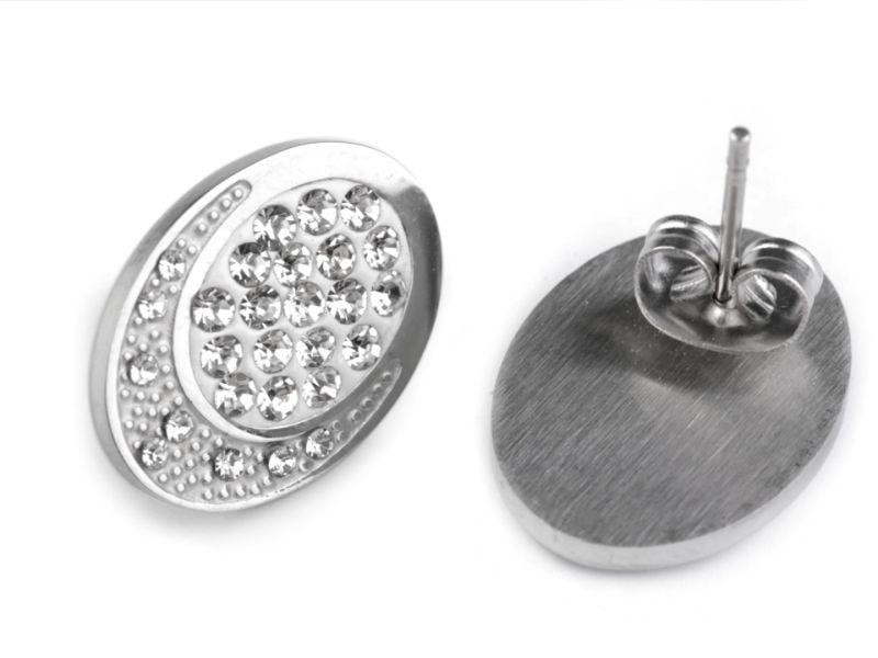 | Popis:- Krásné puzetové náušnice na vás zapůsobí svou křehkou krásou - vyrobeny z kvalitní nerezové oceli. Jsou oválného tvaru, v horní části ozdobené třpytivými kamínky. V dolní části jsou také kamínky - doplněno vygravírovanými puntíky. Kamínky způsobují krásný lesk a živost náušnic. Náušnice mají rozměry 1,2 x 1,6 cm, tloušťku 0,23 cm. Jsou puzetového typu s kovovou zarážkou motýlkem. ... |