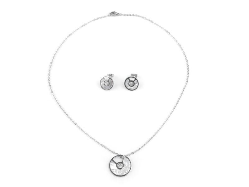 Popis:- Krásná souprava - přívěsek na řetízku a puzetové náušnice na vás zapůsobí svou křehkou krásou, kterou jim dodává lesklá perleť - bílá, místy duhující. Šperky jsou vyrobeny z kvalitní nerezové oceli. Uprostřed každého přívěsku i náušnice najdete třpytivý broušený kamínek. Délka řetízku: 50 cm - Průměr přívěsku: 2 cm - Průměr náušnic: 1,4 cm ... AKCE platí pro objednávky zaslané do 30/4/2017 nebo do vyprodání zásob.