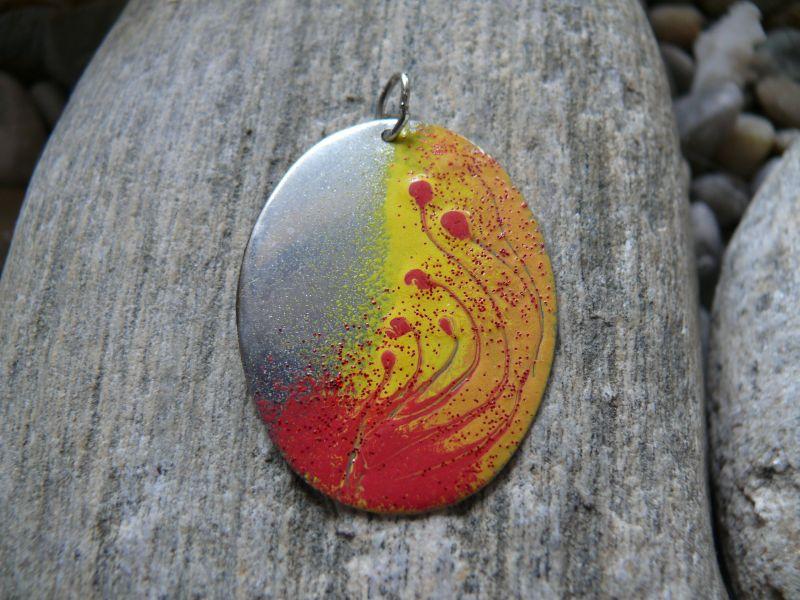 | Popis:- ručně malovaný přívěsek - výtvarná technika smalt - každý kus originál - smaltovací pudr je nanášen na leštěnou nerez. ocel kde zkapalní a následně je šperk tvrzen a vypalován - (vhodné i pro alergiky) ... jen závěsné očko je z bižuterního kovu) - velikost oválu 3 x 3,8 cm ... |